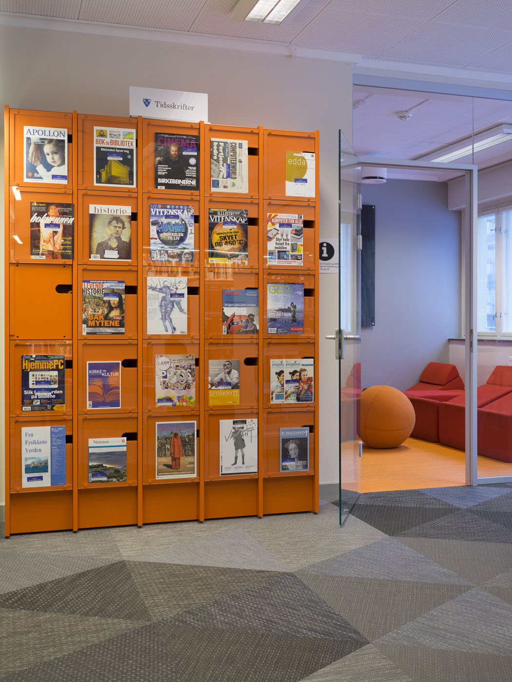 Oslo Cathedral School is the oldest school in Norway, dating back to the 1100's. Today the school is situated in Ullevålsveien 31 in Oslo in a building dating from 1902. The school has undergone significant upgrades in recent years using FabLab Design as the interior architects. The students library at Oslo Cathedral School was old and needed renovation. The school's hard working students deserved a great room that would inspire them to study and provide an enclave for their academic well-being. We created smart solutions to divide the library into different zones and use consistent colour signatures. The library, along with the new hallway, quickly become a favourite space with the students.